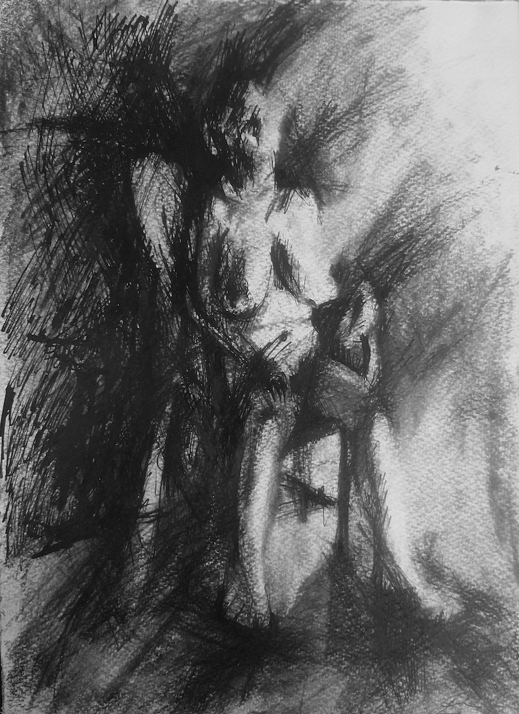 Sitting Figure, ink and charcoal on paper, 8in x 12in
