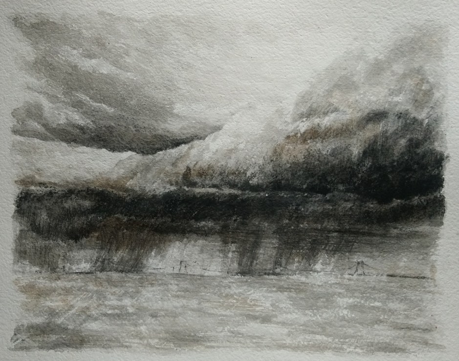 The Storm, watercolour, graphite and charcoal on paper, 52 x 42cm