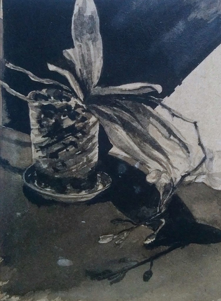 In Bloom, ink on wood, 16.5 x 23cm