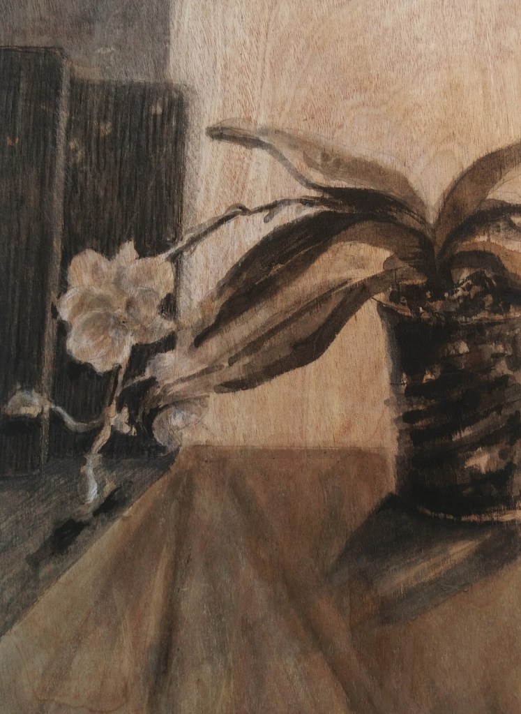 Untitled, ink and charcoal on wood, 24 x 18cm