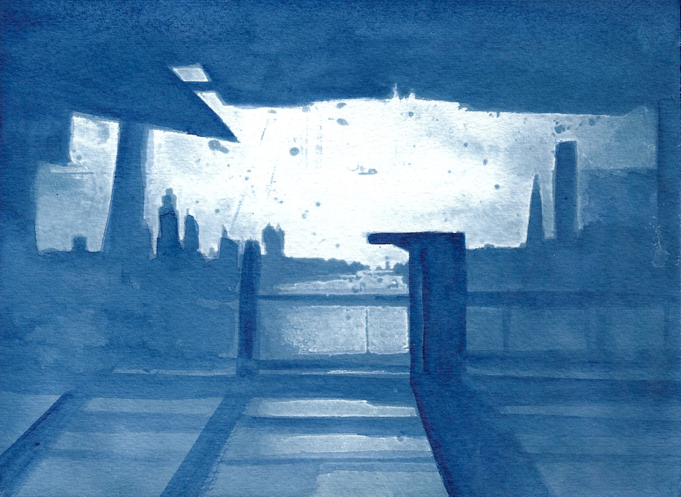 Blackfriars, cyanotype and watercolour on paper, 20 x 15cm
