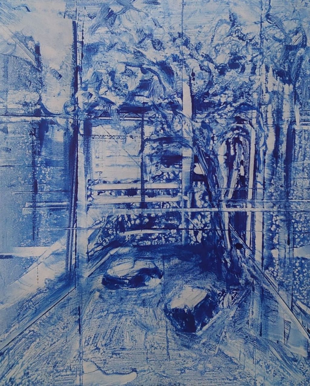 Japanese garden in blue