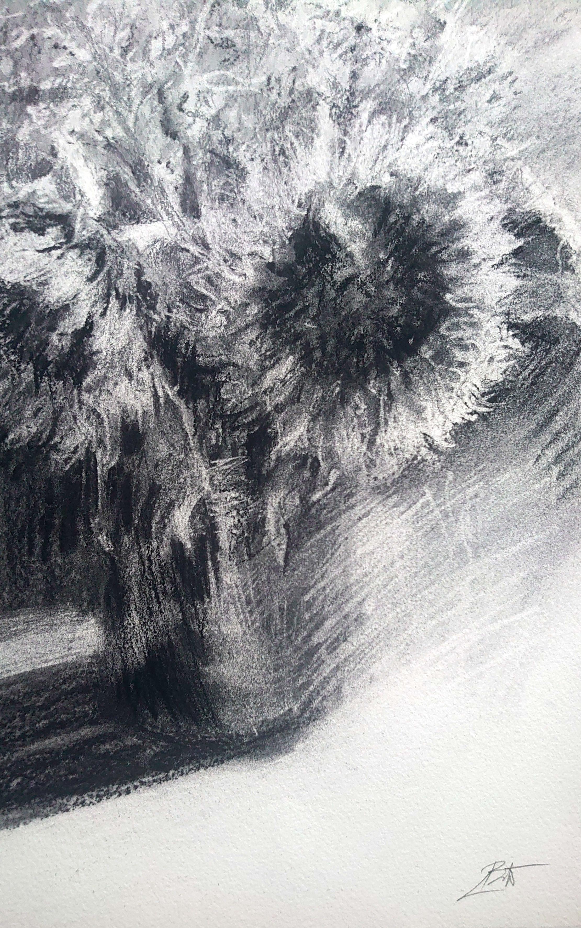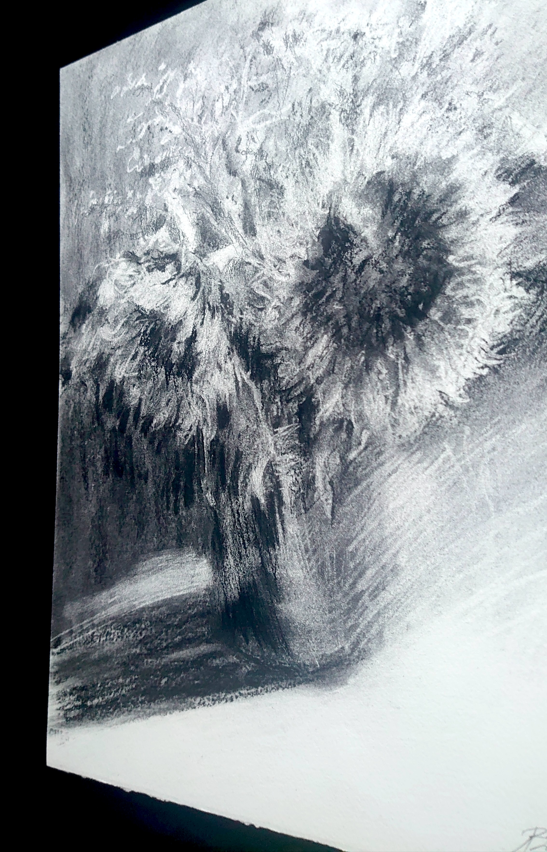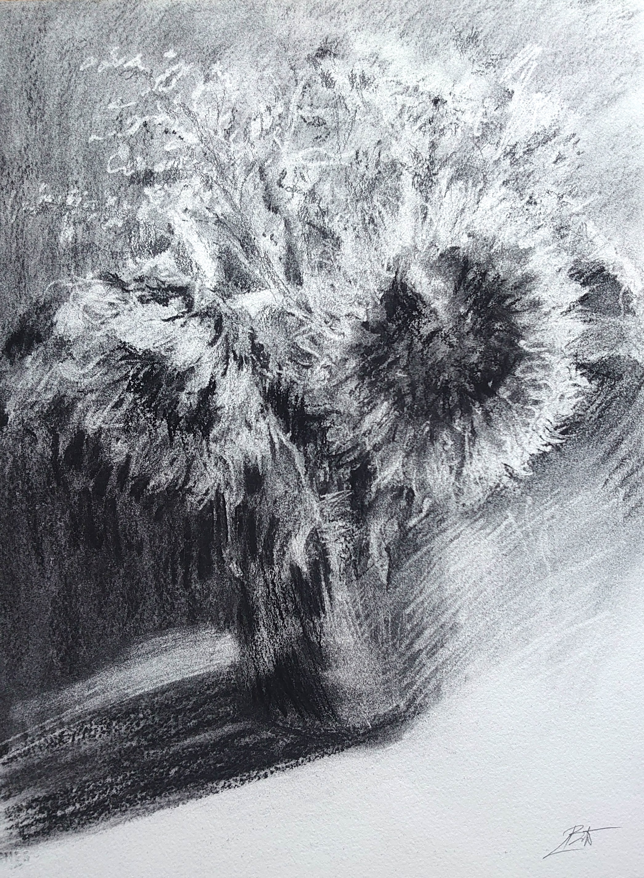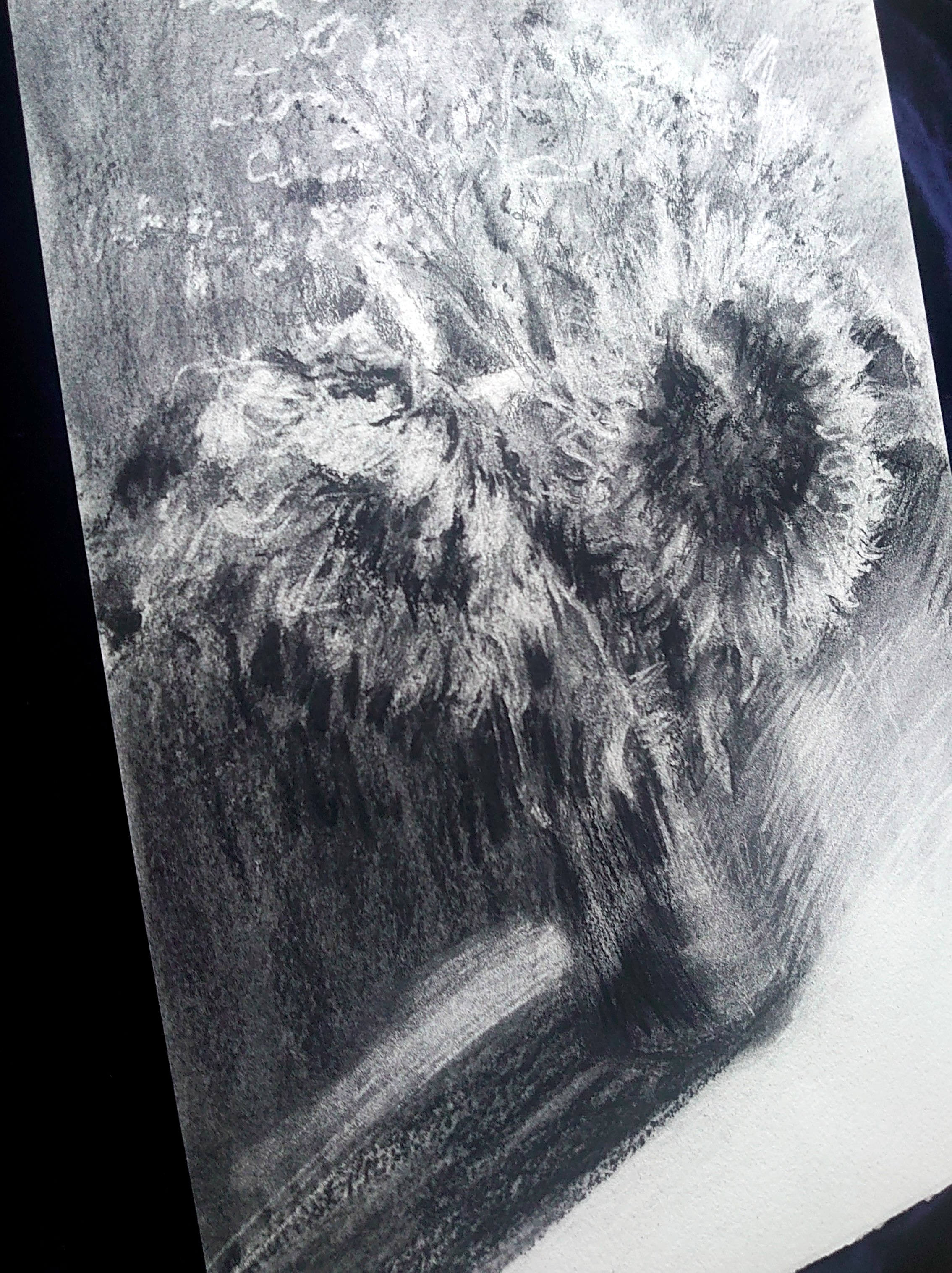 About the work: A recurrent theme in my work, sunflowers are a warm reminder of the sunny Summer days, the infinite fields in front of my grandparents’ house, the sense of joy and freedom while driving towards the seaside. This drawing was a mere attempt to capture and contain some of that joy.