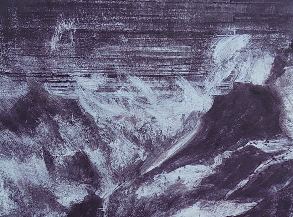 While visiting the Masca Valley in Tenerife I was struck by the dramatic shapes and complex textures that dominated the landscape. One moment we were by the sea and the next among the strong peaks of volcanic rock piercing through the clouds. Somehow the two experiences merged and I could almost see the choppy waves smashing into the rocks.